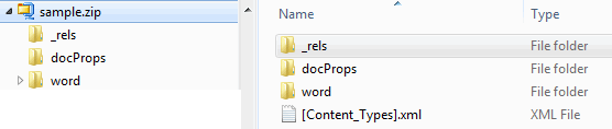 .docx解决了传统.doc格式存在的几乎所有问题。它采用了OOXML(Office Open XML)标准,是把一堆描述文档结构、样式、内容的 XML 文件打包在一起形成的文档。图片、音频、视频都是独立的,再使用zip压缩打包。